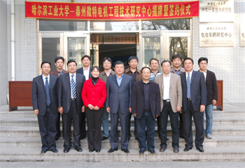 江蘇省姜堰市市委欒立平副書記,經(jīng)濟發(fā)展局魏玉山局長,科技局王亞親局長,市委辦公室徐雨峰主任,泰州市科技局周根成處長,江蘇微特利電機制造有限公司李錦洲董事長,趙炳榮副總經(jīng)理,施紅亮技術部長;哈工大科技處郭斌處長,李立毅副處長程東明副處長;電氣工程及自動化學院徐殿國院長,電磁與電子技術研究所崔淑梅教授,宋立偉教授,張千帆副教授等參加了揭牌儀式。郭斌處長和欒立平副書記為中心揭牌。魏玉山局長和徐殿國院長等在大會上講話。崔淑梅教授和李錦洲董事長簽訂了合作協(xié)議。